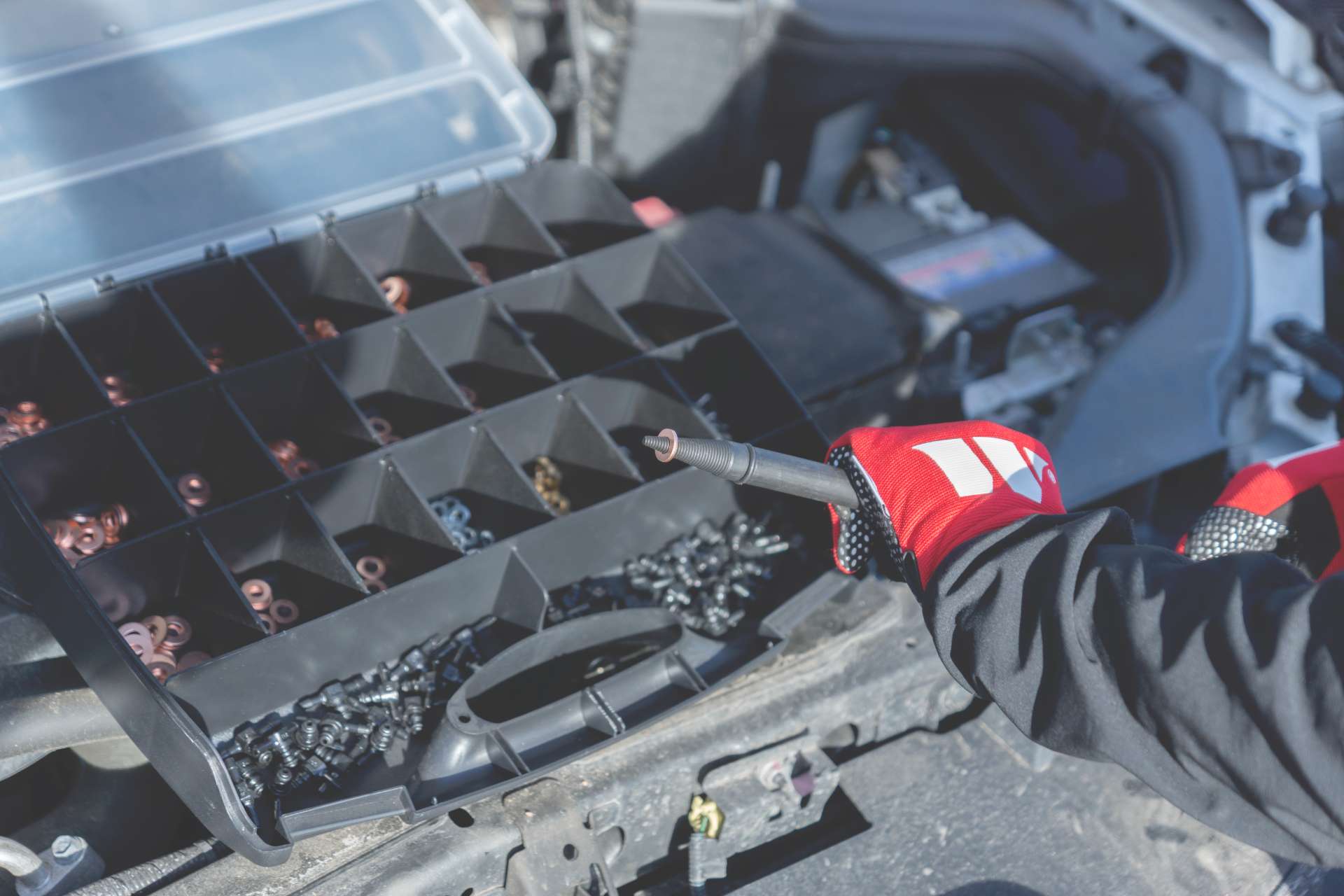 Fitted magnets inside the cover to fix into place whilst working. For the protection of the paintwork during repairs. Cover size: 80x60cm.