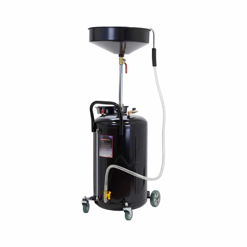 Compressed air connection, makes it easier to empty the container without oil spillage.