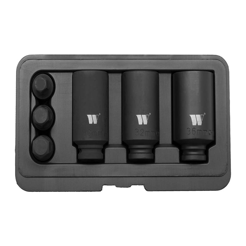 3-Piece Protective Impact Socket Set With Protective Covers 17, 19, 21mm