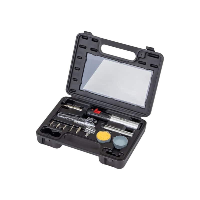 7 accessories: Chisel tip, anvil tip, at tip, deflector, solder, cleansing sponge & a cap.