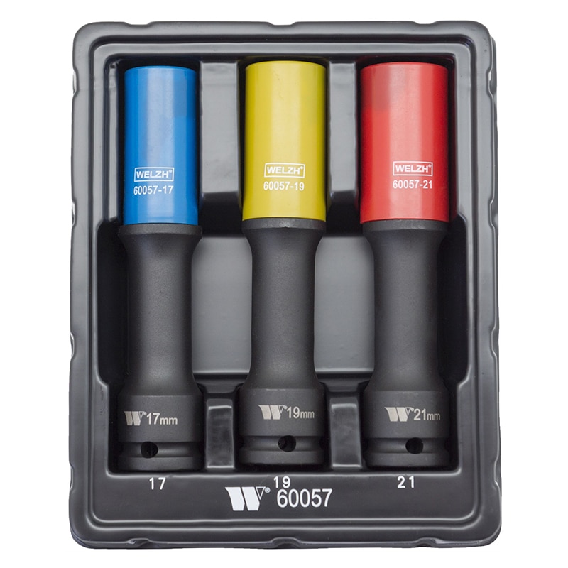 Protective Impact Socket Set; Long, 17, 19, 21mm, 1/2”