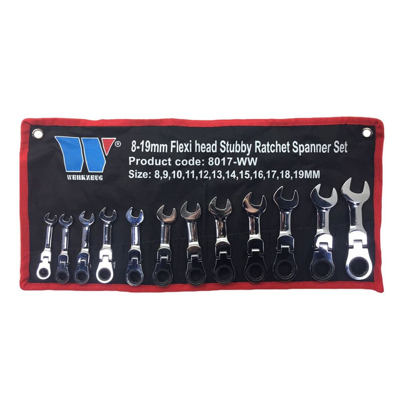 Ratchet Spanner Set; Flexi-Head, Stubby, 8-19mm