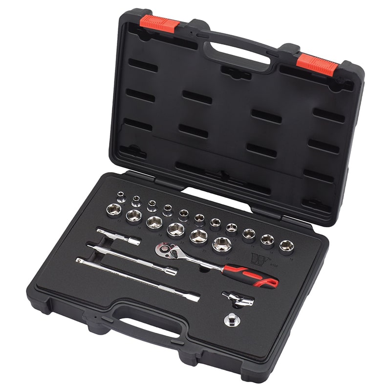 Standard 6 pt Drive Sockets: 6, 7, 8, 9, 10, 11, 12, 13, 14, 15, 16, 17, 18, 19, 20, 21, 22mm.