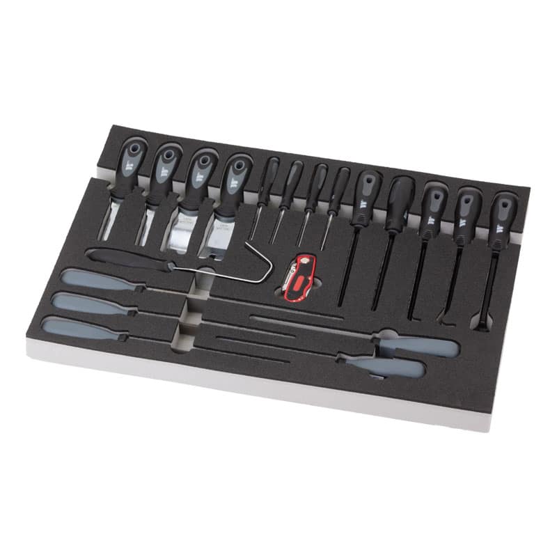 This robust industry standard foam trays are pre-cut and filled with a range of tools including: